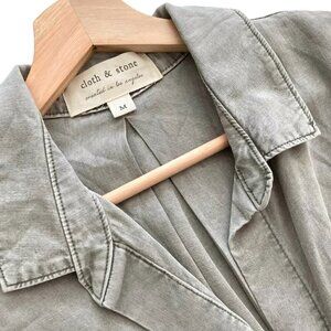 Anthropologie CLOTH & STONE Green Split Back Button Up High Low Shirt