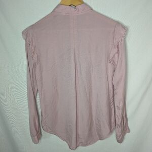 Anthropologie CLOTH & STONE XS Top Pink Frayed Ruffle Shoulder Western Button Up