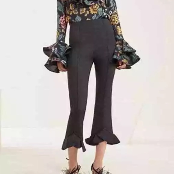 Anthropologie C/MEO Collective Orbit Ruffled Flared-Hem Pants Sz M NWT