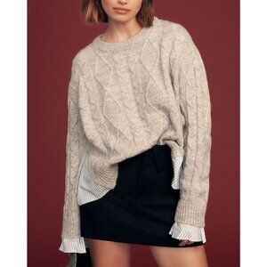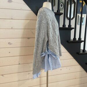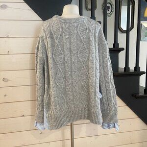 Anthropologie Cable Knit Twofer Tie Sweater NWOT Size Large Woven trim Pullover Styling Long Sleeves Crew Neck Pit to Pit Measures 30"