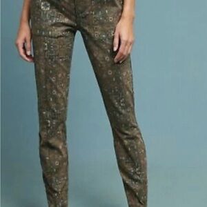 Anthropologie Cadet Slim Utility Pants Size 28 Green Patterned Boho
