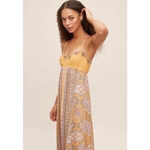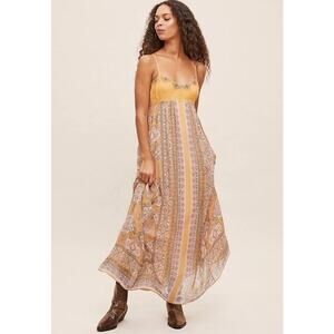 Anthropologie Calida Maxi Dress Size 4P Dark Yellow Print Festival Boho Vacation