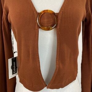 New Callahan Open Front Ring Bell Sleeve Ribbed Vera Top Coco Mocha Size M