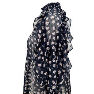 Anthropologie Calligraphie Floral Sheer Ruffle Blouse Large - Victorian High Neck Romantic Cottagecore