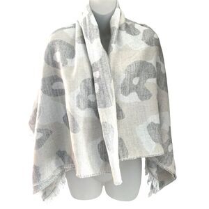 Anthropologie Camo Oversized Blanket Scarf Wrap Frayed Edges Gray White 52"x52"
