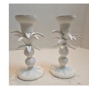 New with tags, set of 2 Anthropologie Ceramic Candle Holders, Laia Abstract Botanical design, resembling Palm, Flower or Artichoke. Each holds 1 taper candle. Discontinued design. MSRP 19.95 each.