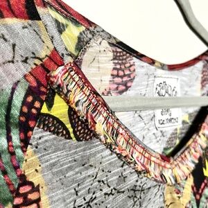 Anthropologie Cap Juluca Aldo Martins Artsy Floral Print Fringe V-neck Tee US 6