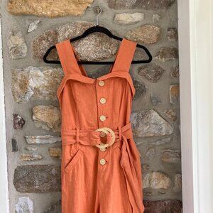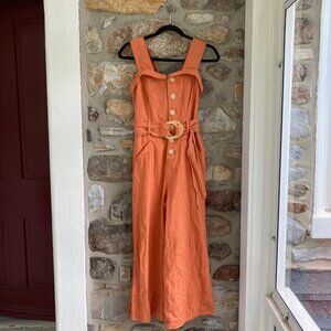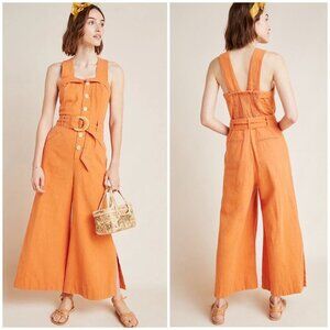Anthropologie Cape Cod Linen Belted Jumpsuit Orange Women’s 0