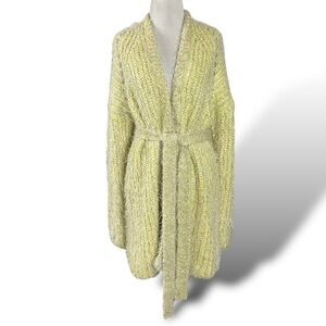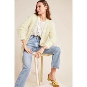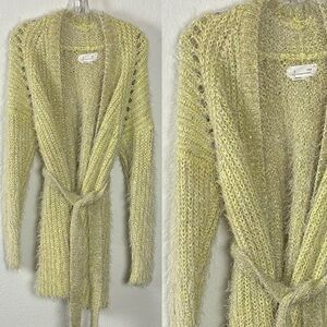 Anthropologie Cardigan Sweater Medium Larkin Shimmer Eyelash Metallic Belt