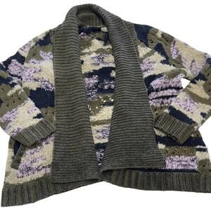 Anthropologie Cardigan Womens Large Green Purple Shawl Collar Open Front Knit