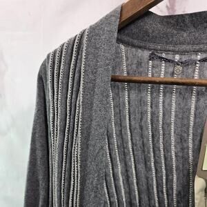 Anthropologie Cardigan Womens XS Gray Ribbed Sweater Knitted Knotted Silver