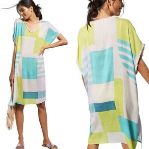 Anthropologie Carla Weeks Jayla Cover Up Dress Geometric Print Blue Green