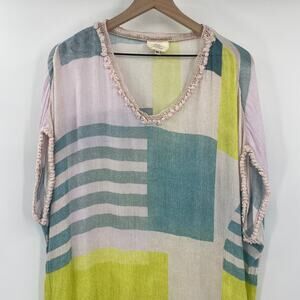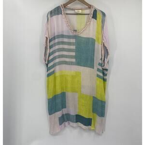 Anthropologie Carla Weeks Cover Up Dress Geometric Print Blue Green Womens XS/S
