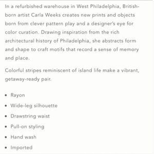 Anthropologie Carla Weeks Watercolor Striped Wide Leg Slit Pants in medium. The pants are pre-owned and there are no stains or rips. Minor wear/pilling.