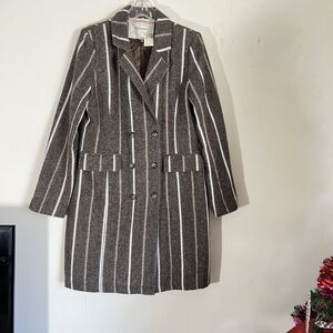 Anthropologie Cartonnier Coat Jacket Womens M Brown White Striped Wool Blend double breasted academic preppy