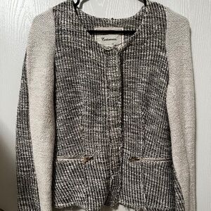 Anthropologie Cartonnier Knit Snap Front Jacket Ivory Black Gold Size S