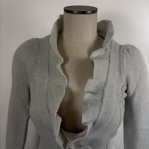 Anthropologie Cartonnier Light Blue Boiled Wool Ruffled Collared Cardigan XS