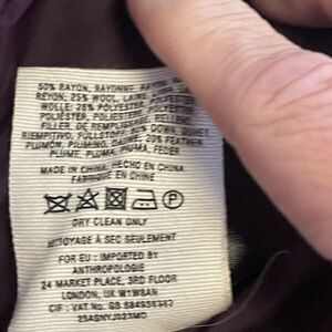 Anthropologie Cartonnier Purple Duffle Coat Down Filled Size 2.