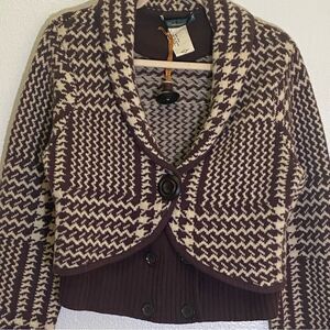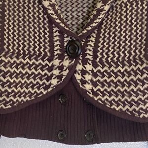 Anthropologie Cartonnier - Wool Brown Jabberwocky Cardigan Sweater - size Large L NWOT Cropped Length - integrated double breasted vest - extra buttons and thread attached - single button closure Approximate lay-flat measurements: Bust/Chest: 18.5" / Length: 19.5" / Sleeve: 26" Condition: NEW without tags - NWOT 100% Wool - Dry Clean • Fast shipping: same or next business day from a smoke and pet free home • Bundles of 2 or more items receive a 40 off discount offer and combined shipping