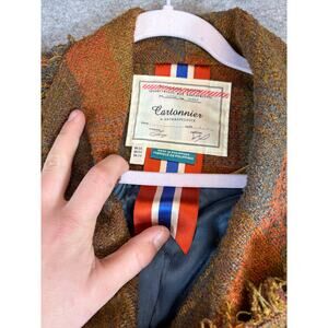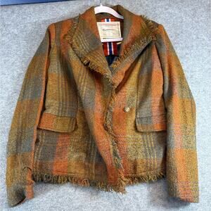 Anthropologie Cartonnier Wrap Blazer Womens Size 2 Brown Plaid Tweed Fringed