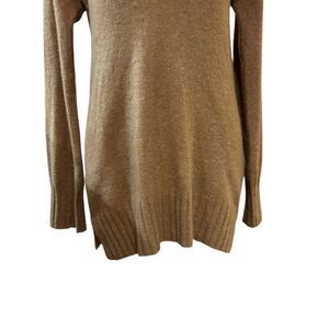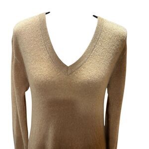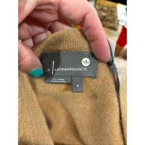 Anthropologie Cashmere Sweater Oversized Camel/Tan Color Ribbed Details V-Neck Size Small in Very Good Pre-Loved Condition.