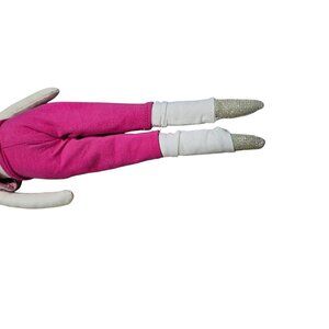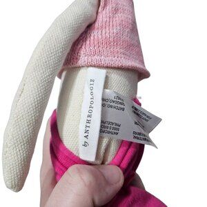 This Anthropologie cat doll is crafted with attention to detail, featuring a charming pink outfit and leopard print headband. The handmade design ensures each piece is unique, offering a whimsical addition to any collection or nursery decor.