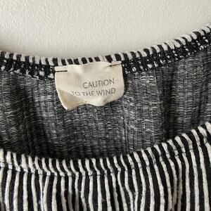 Black and white striped maxi length dress by Anthropologie brand Caution to the Wind. Soft and stretchy fabric. It’s in great preowned condition other than a small bit of pilling. Size tag is missing but I would estimate it fits like a size small- but definitely see measurements in photos for most accurate size info.