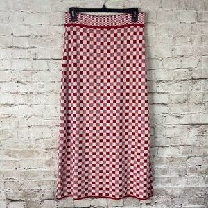 Anthropologie Cecilia Prado Checkered Midi Skirt Sweater Red Ivory Knit Small S