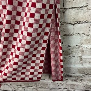 Women's Anthropologie Cecilia Prado Midi Skirt Size Small. Red & Ivory Checkered Skirt with Pull On waist and side slit made of Viscose & Polyamide. Retail is $118. Gently Used, please see pictures for details.