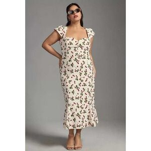 The Anthropologie Cecily Strawberry Midi Length Dress is a charming and versatile option for a range of occasions. Made from a blend of elastane, viscose, and cotton, this long dress features a sweetheart neckline and short cap sleeves, adding a touch of elegance.