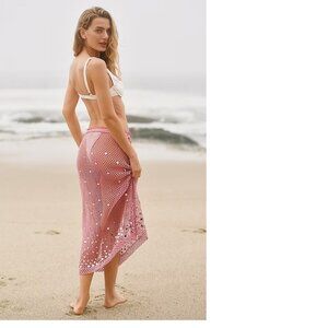 Anthropologie Celandine Sheer Mesh Sequin Drawstring Mermaid Midi Skirt size M