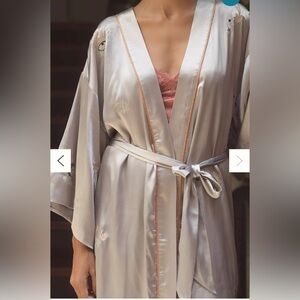 Experience luxury with this elegant silver kimono robe. Perfect for lounging in style.