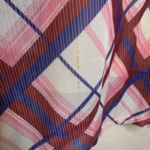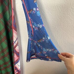 Anthropologie CeliaB Ixora mesh midi slip dress with mixed plaid pattern. Playful preppy dress with unique pattern blocking - French brand known for bold prints and retro styling.