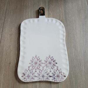Anthropologie Ceramic Cheese Board Tray with Gold Handle and Purple Boho Tile Pattern