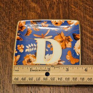 Anthropologie Ceramic Floral Initial Trinket Dish. Letter D