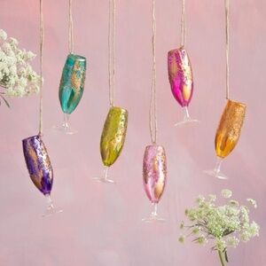 Anthropologie Champagne Teal Glass Flute Ornament