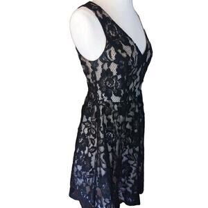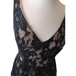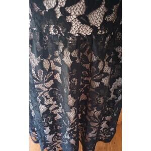 Anthropologie Champagne and Strawberry Lace Dress Sz S Overlay black Nude Flare
