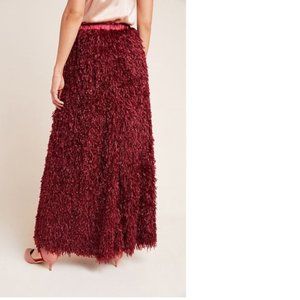 With a sweeping silhouette and a feathery finish, this maxi skirt is a head-turning affair - style it with a silky camisole and heels for an instantly soiree-ready ensemble.