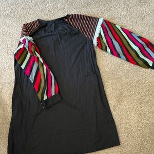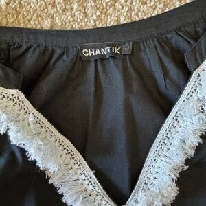 Meaning "beautiful" in Indonesian, Chantik is a line of easy-to-wear, globally inspired pieces, all designed by Brazilian founder Adriana Andrade. From tassels and poms to embroidery and lace, each and every detail is influenced by Adriana's years of travel across Europe, Asia and South America, in addition to her study of traditional weaving techniques. Here, a fringed neckline adds a bohemian touch to a contemporary silhouette in a colorful chevron motif.