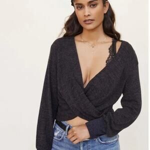 Anthropologie Charcoal Gray Twisted Front Sweater Size Small