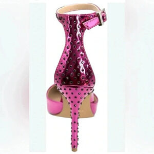 Anthropologie Charles David Poison Jeweled Heel Pump Ankle Strap Fuchsia 9.5 NEW
