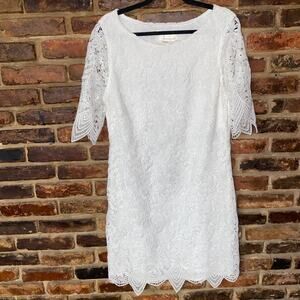 Anthropologie Charleston White Lace Short Sleeve Mini Dress Women's Size 14