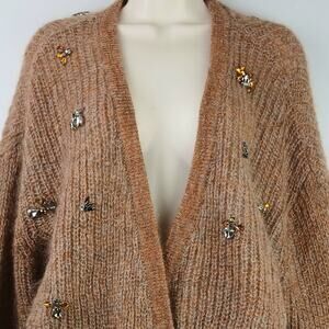 Anthropologie Charlie & Robin SZ M Brown Mohair Angora Wool Sweater Crystals