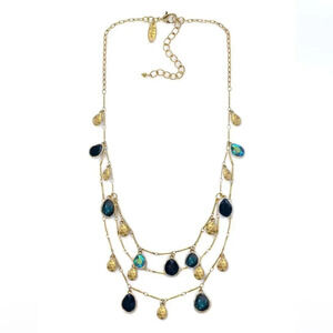Dangling stones mix with hammered discs in decorating this fun and fashionable layered necklace