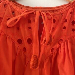 Anthropologie Chatal Eyelet Embellished Button Down Orange Bohemian Blouse Sz XS