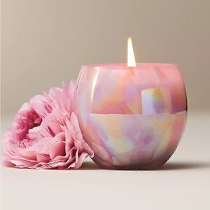 Anthropologie Cheena Egg Floral Pink Peony & Neroli Glass Candle New In Box