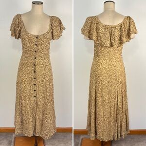 Anthropologie Cheetah Print Dress Button Front Midi Dress Size 4 No Tie Waist