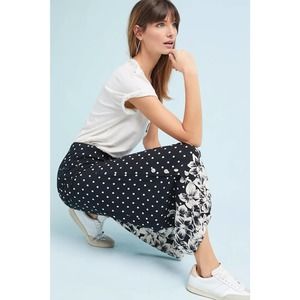 Anthropologie ett:twa Chesapeake Wide-Legs, Black with White Polka Dot and Floral Print, Button Detail at Cuff, Size 4