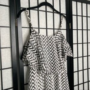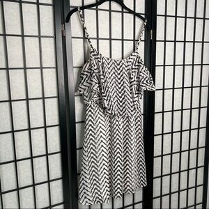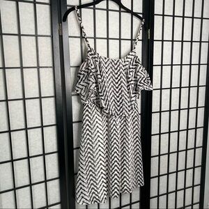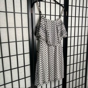 Anthropologie Chevron Scoopneck Lightweight Mini Sun Dress Black White Small