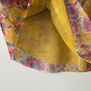 Anthropologie Chiffon Button Up Front 3/4 sleeve top floral stretch layered XS